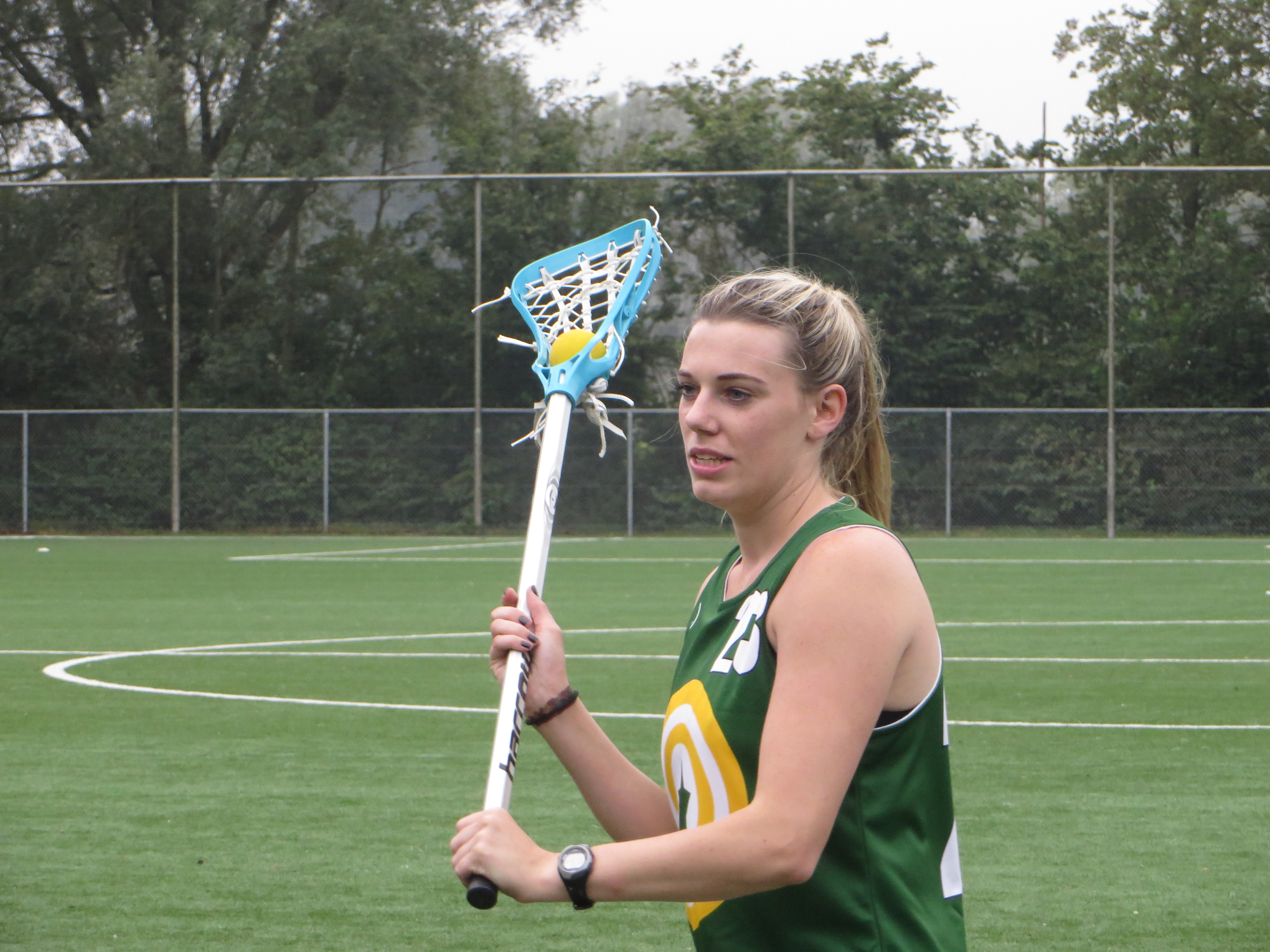Amy and Becky took turns in goals playing half a match each on the Saturday. Both goalies played very well and helped to control the plays around the defence. Unfortunately, Becky was feeling unwell on the Sunday so was unable to play. Surprisingly, it worked out for the team to only bring a goalie sub and no field subs! Sadly both Amy and Becky returned to Ireland feeling unwell from the weekend and so we wish them both a speedy recovery 🙂